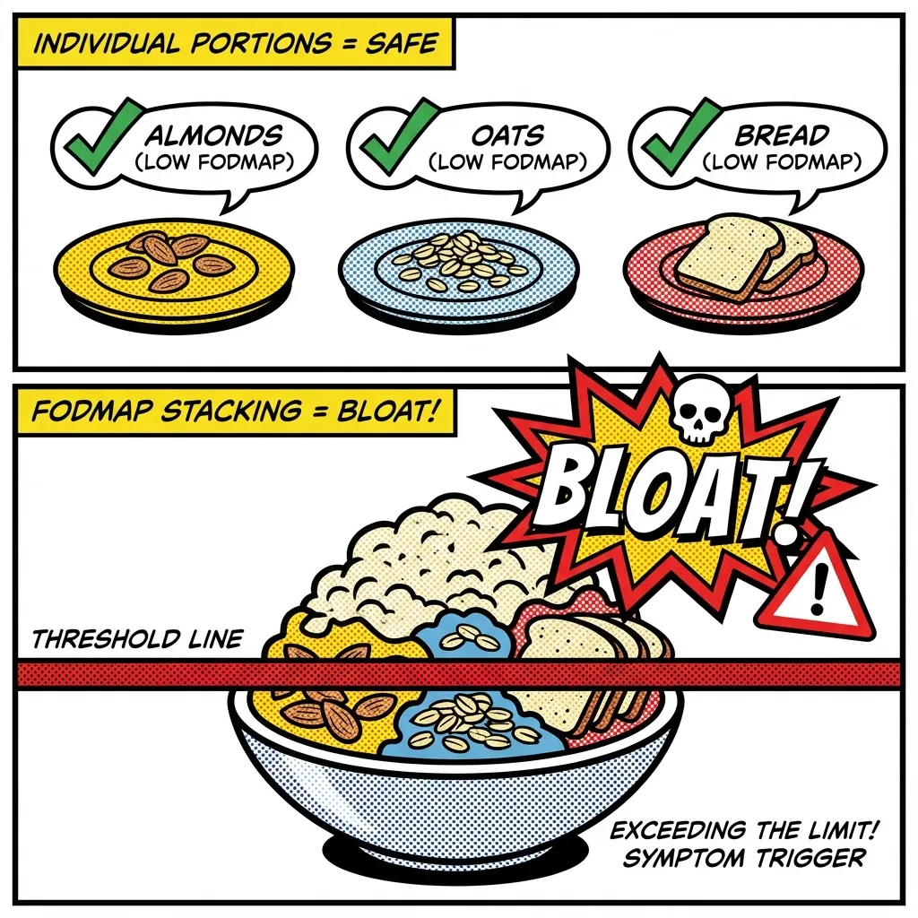 Even "safe" foods can cause issues if you eat too much of multiple foods containing the same FODMAP type in one meal. For example, combining oats (fructans), a large portion of almonds (oligosaccharides), and wheat-based bread in a single sitting could push you over the threshold. Space out your low-FODMAP servings. 4