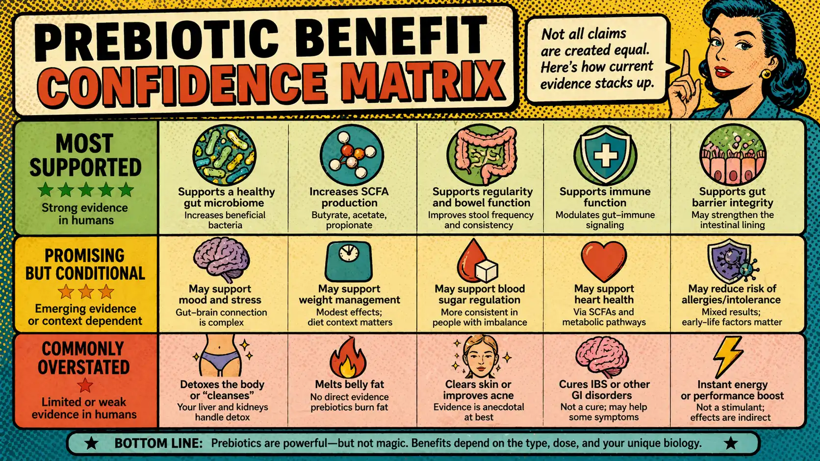 Not every ingredient added to a bar, powder, or capsule automatically deserves the stronger prebiotic claim. And not every high-fiber food behaves the same way just because fiber is involved.