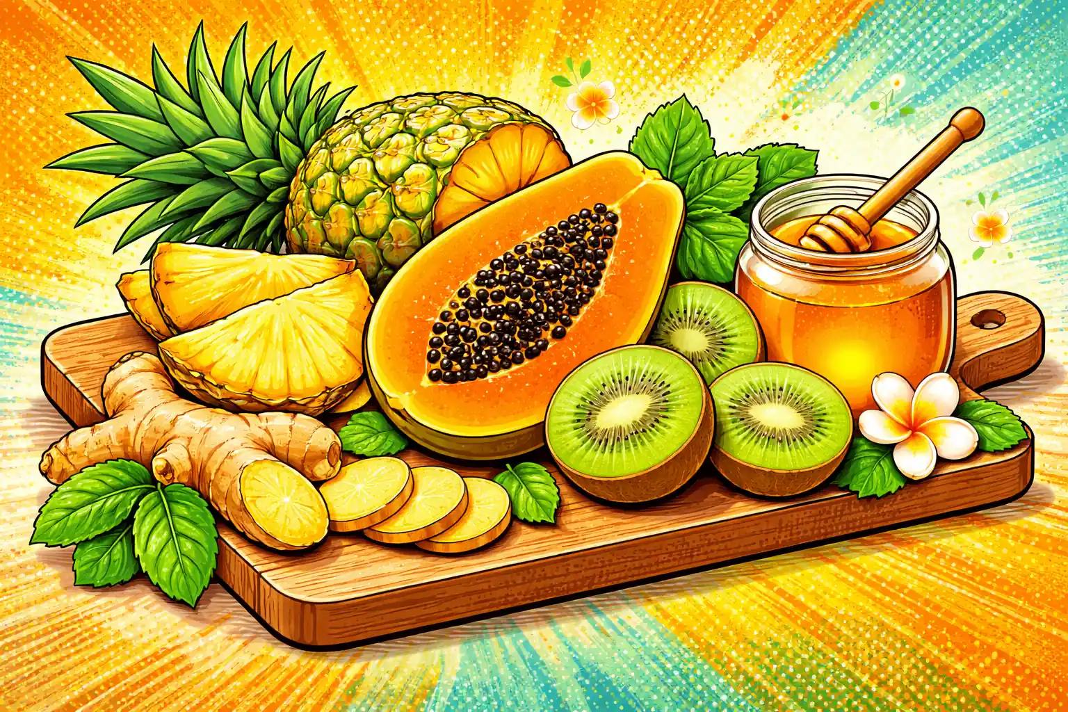 - Including enzyme-rich foods (pineapple, papaya, kiwi)