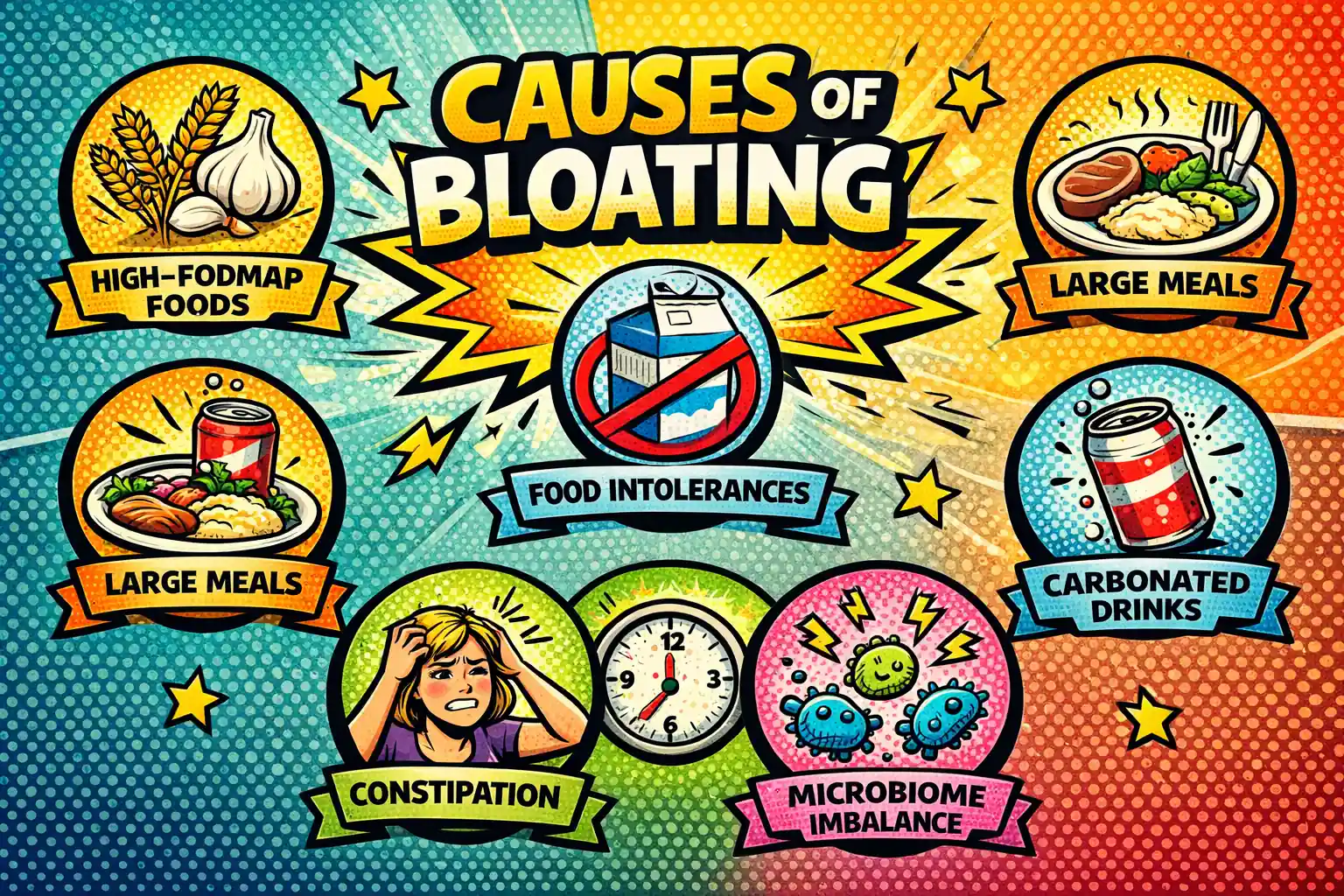 Everyone produces gas daily; that’s normal physiology. Bloating becomes a problem when gas or fluid isn’t handled well (slow movement, “trapped” pockets), or when the gut is hypersensitive—so normal amounts feel uncomfortable. Bloating often overlaps with IBS, functional dyspepsia, food intolerances (like lactose), or constipation, but it can also occur in otherwise healthy people after big meals, fizzy drinks, or fast eating.